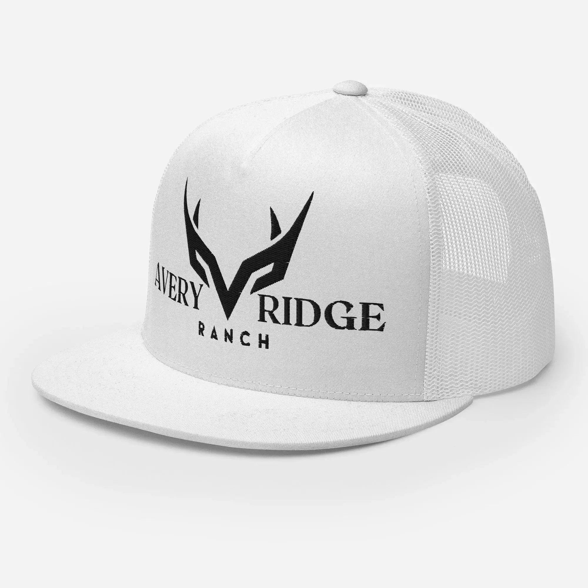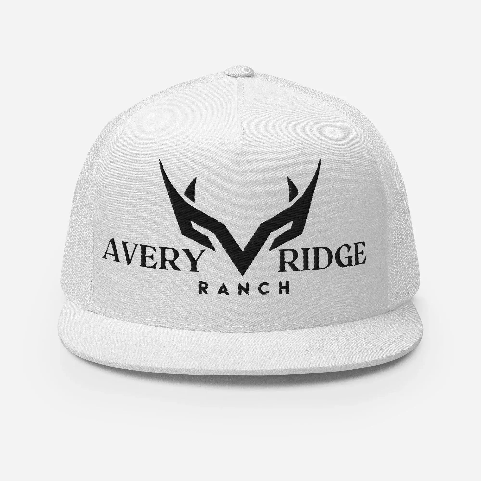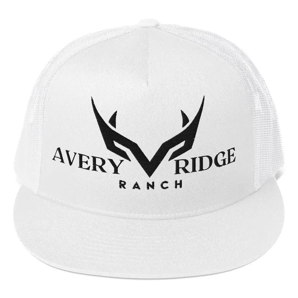 Avery ranch ridge white trucker cap with black logo in classic style